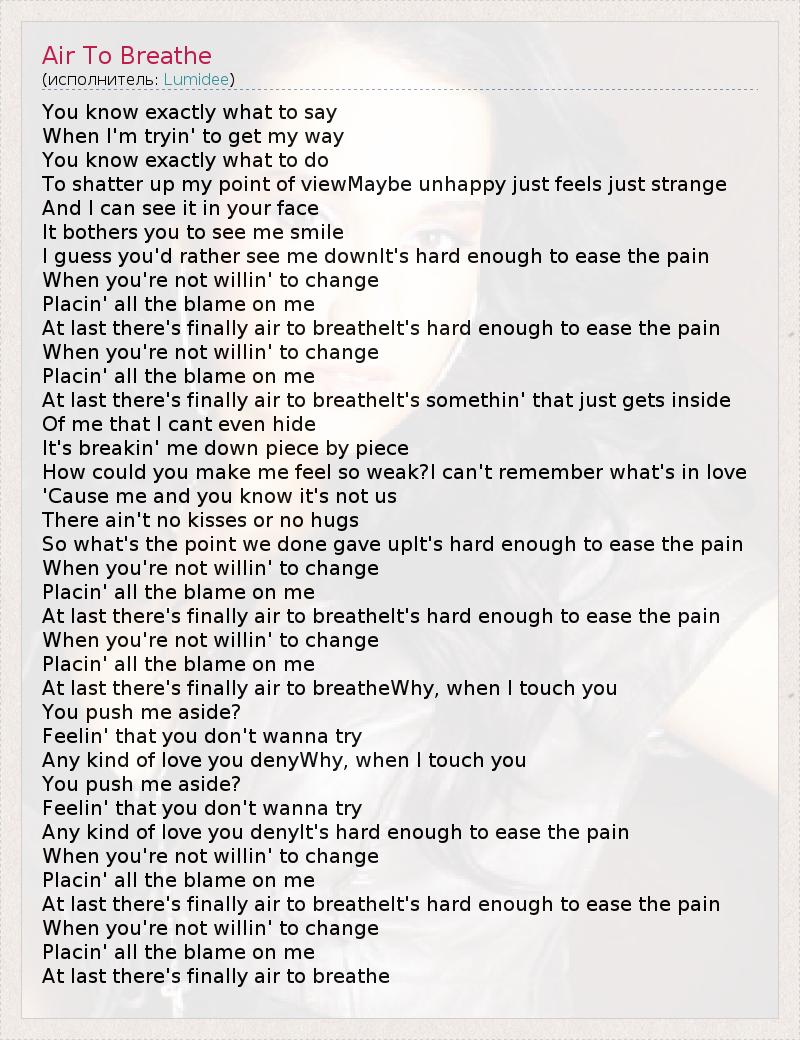 А как ты думаешь, о чем песня "Air To Breathe" ?