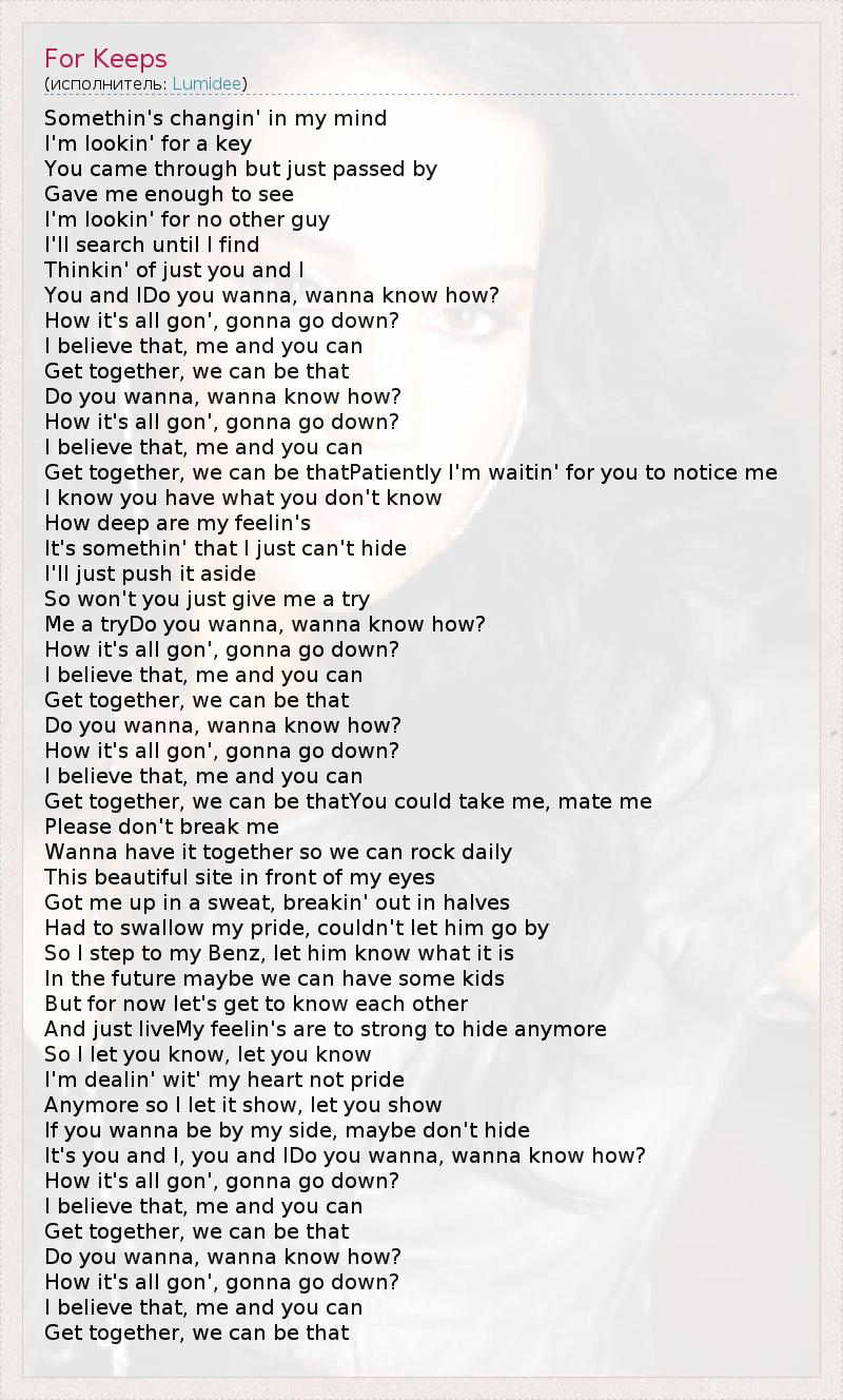 А как ты думаешь, о чем песня "For Keeps" ?