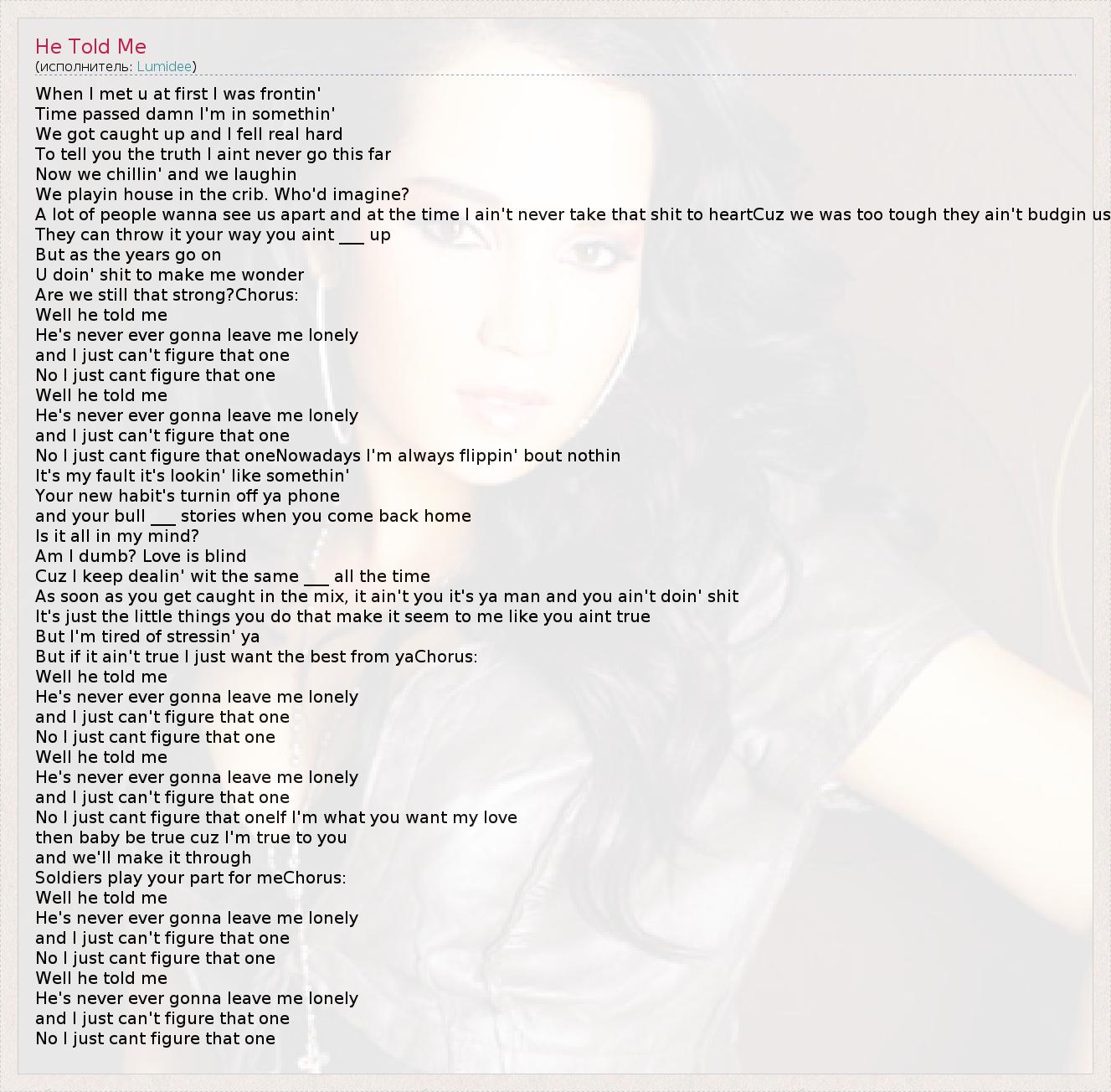 А как ты думаешь, о чем песня "He Told Me" ?