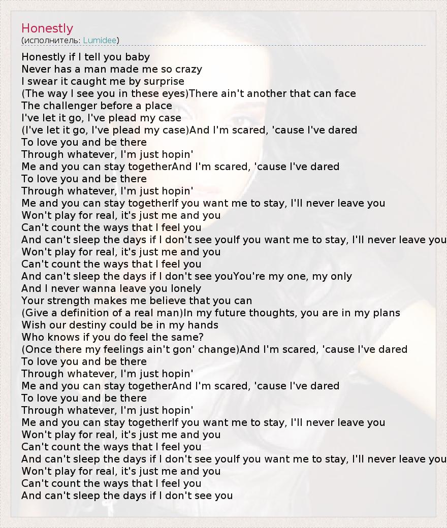 А как ты думаешь, о чем песня "Honestly" ?