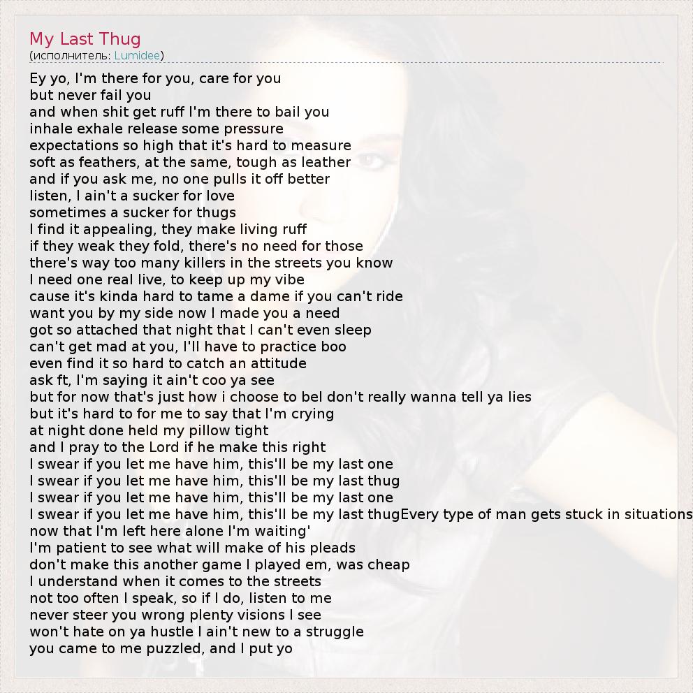 А как ты думаешь, о чем песня "My Last Thug" ?