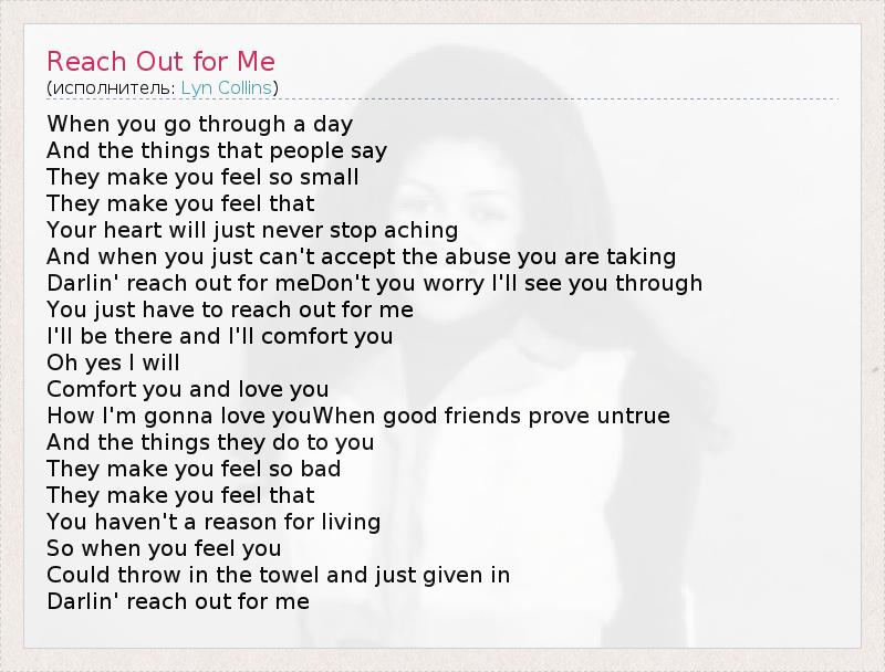 А как ты думаешь, о чем песня "Reach Out for Me" ?