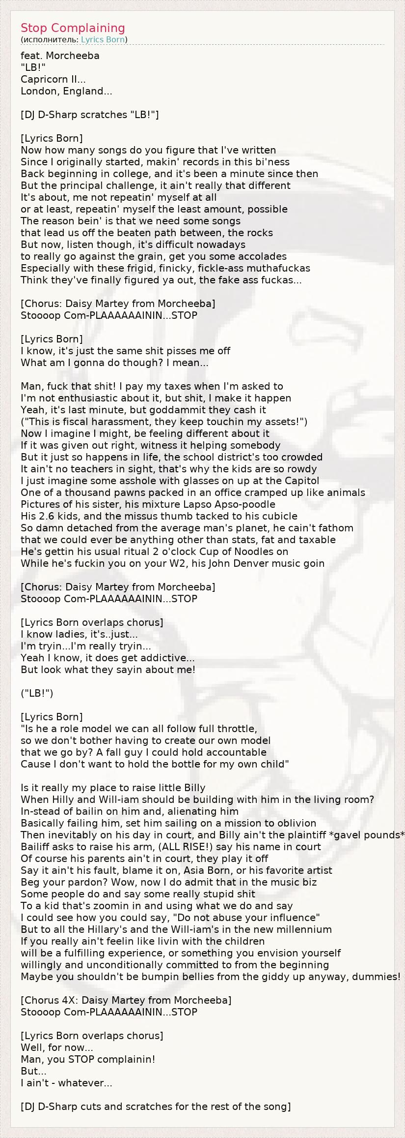 А как ты думаешь, о чем песня "Stop Complaining" ?
