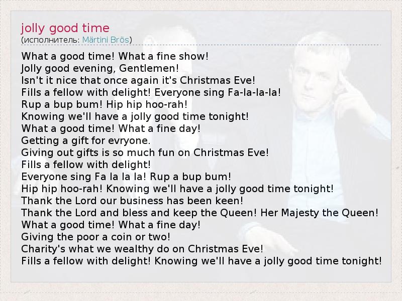 А как ты думаешь, о чем песня "jolly good time" ?