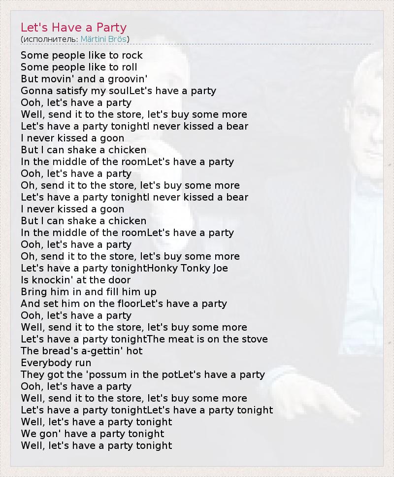 А как ты думаешь, о чем песня "Let's Have a Party" ?