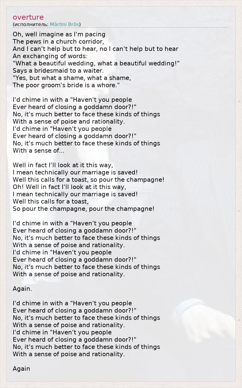 А как ты думаешь, о чем песня "overture" ?