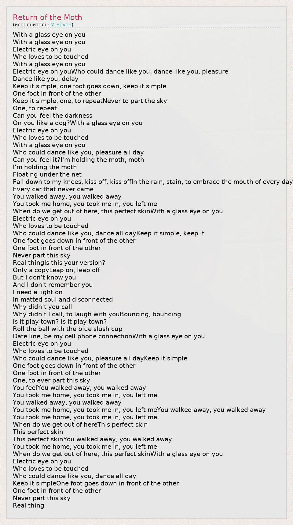 А как ты думаешь, о чем песня "Return of the Moth" ?