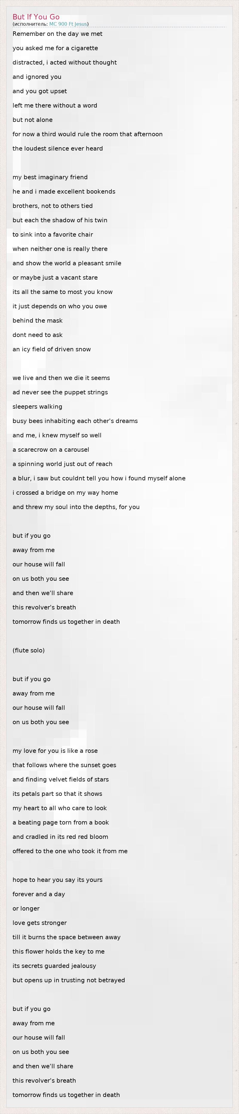 А как ты думаешь, о чем песня "But If You Go" ?