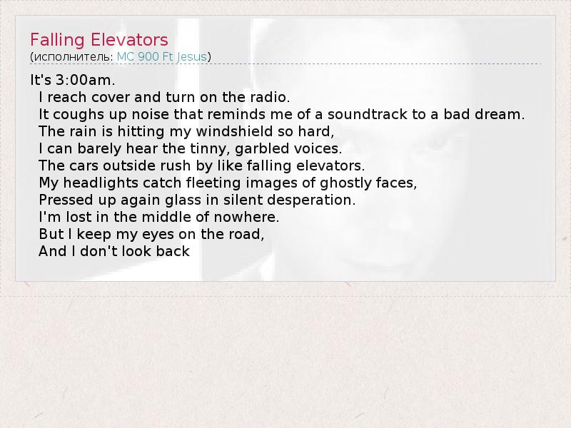 А как ты думаешь, о чем песня "Falling Elevators" ?