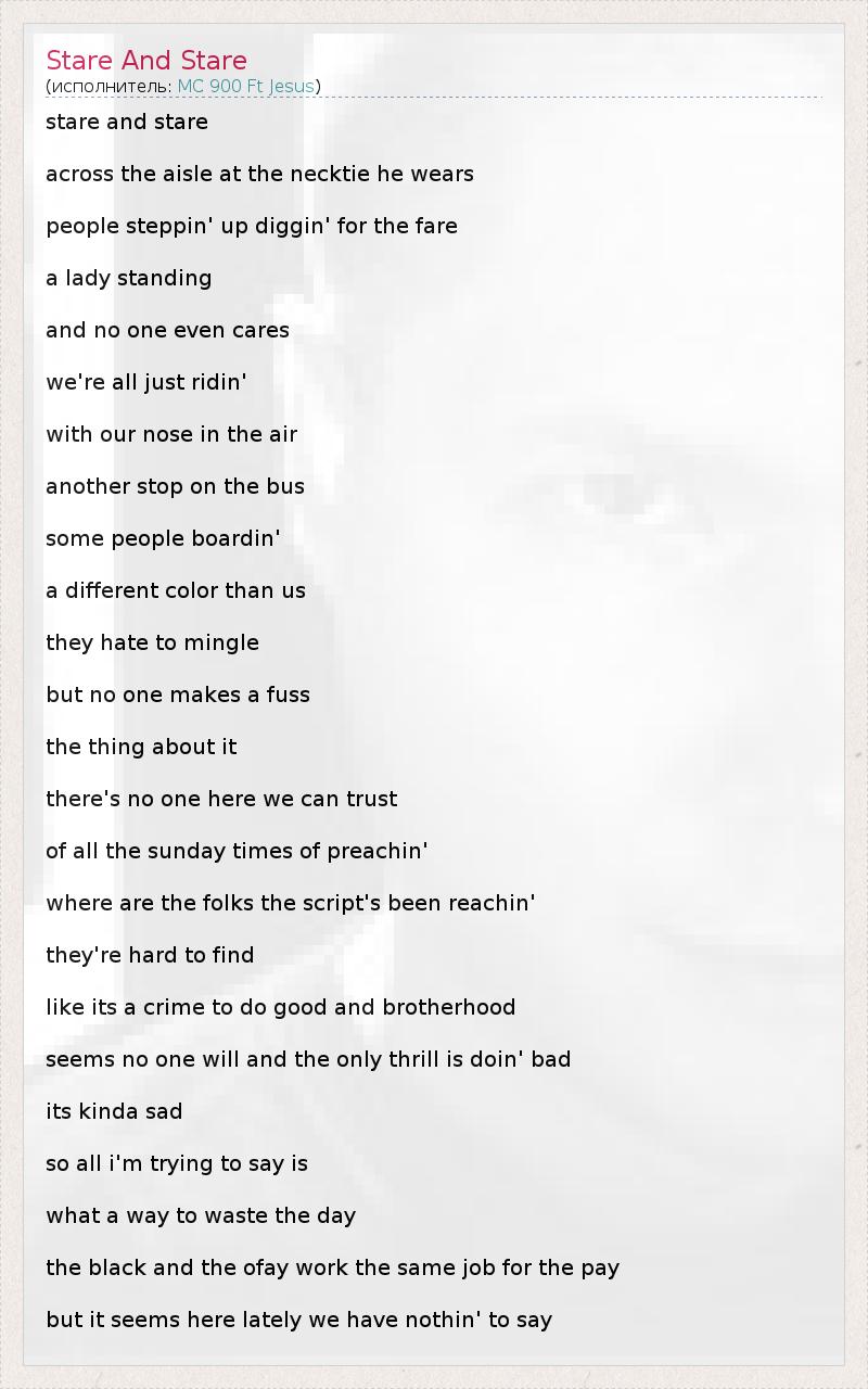 А как ты думаешь, о чем песня "Stare And Stare" ?
