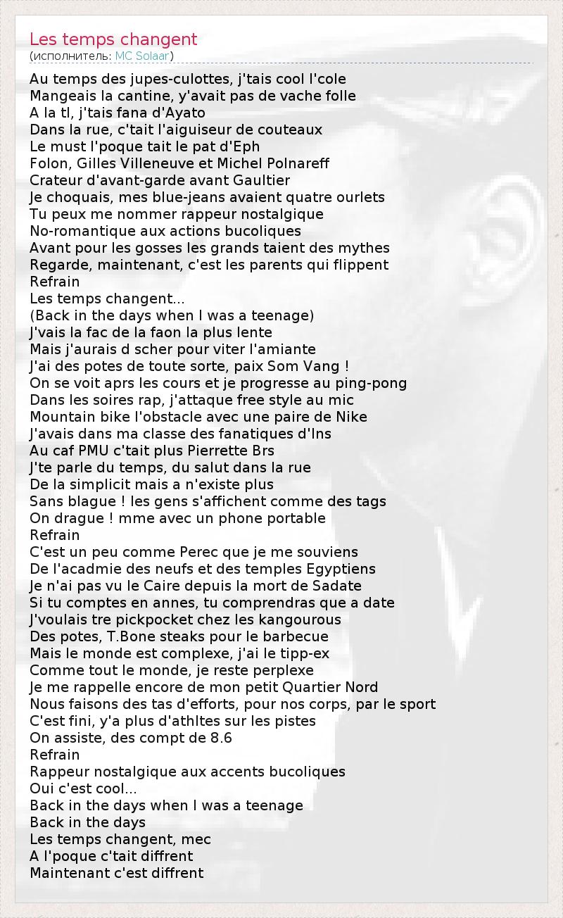 А как ты думаешь, о чем песня "Les temps changent" ?