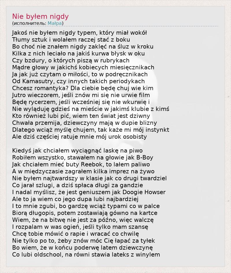 А как ты думаешь, о чем песня "Nie byłem nigdy" ?