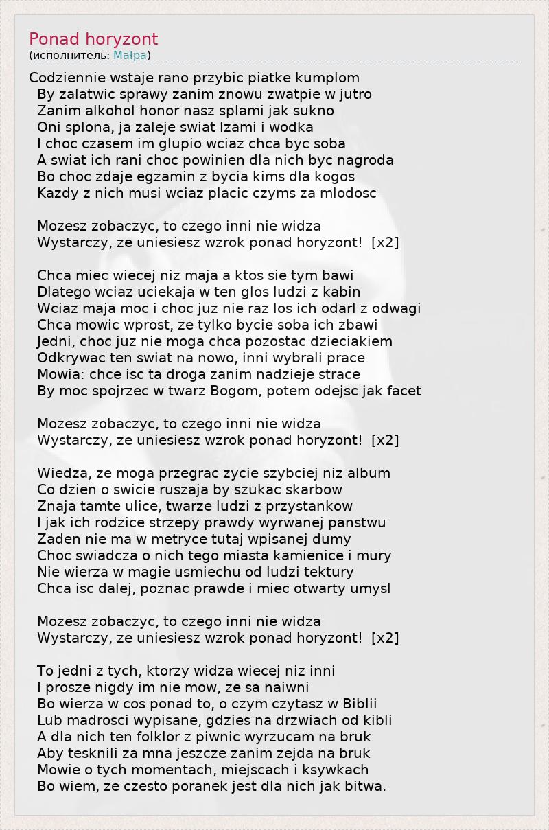 А как ты думаешь, о чем песня "Ponad horyzont" ?