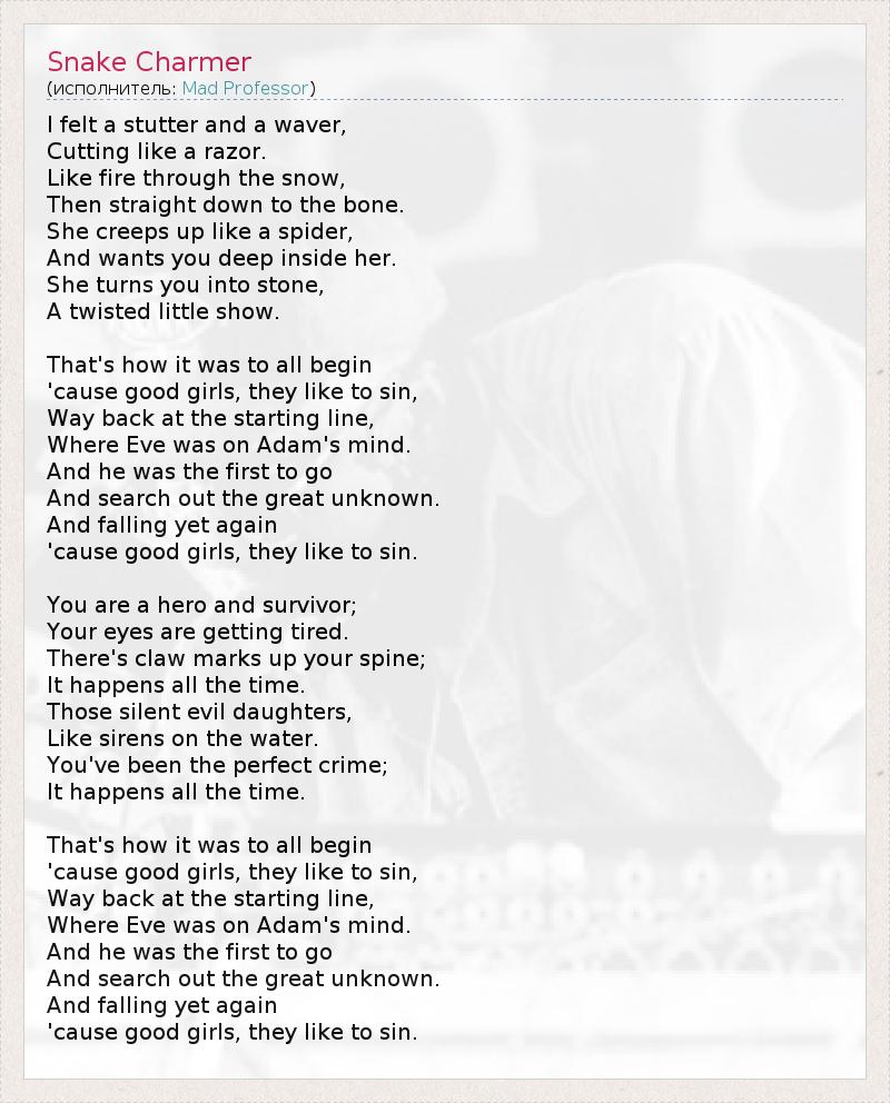А как ты думаешь, о чем песня "Snake Charmer" ?
