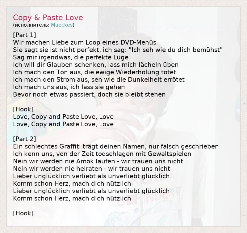А как ты думаешь, о чем песня "Copy & Paste Love" ?