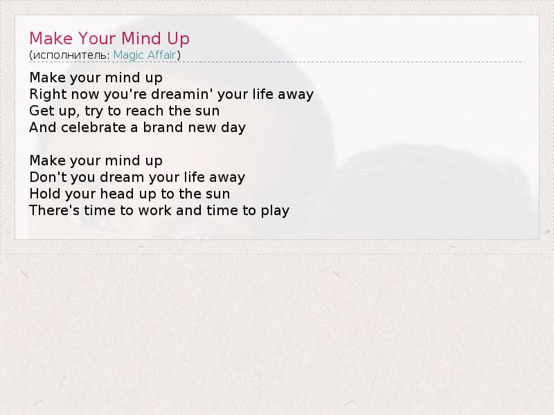 А как ты думаешь, о чем песня "Make Your Mind Up" ?