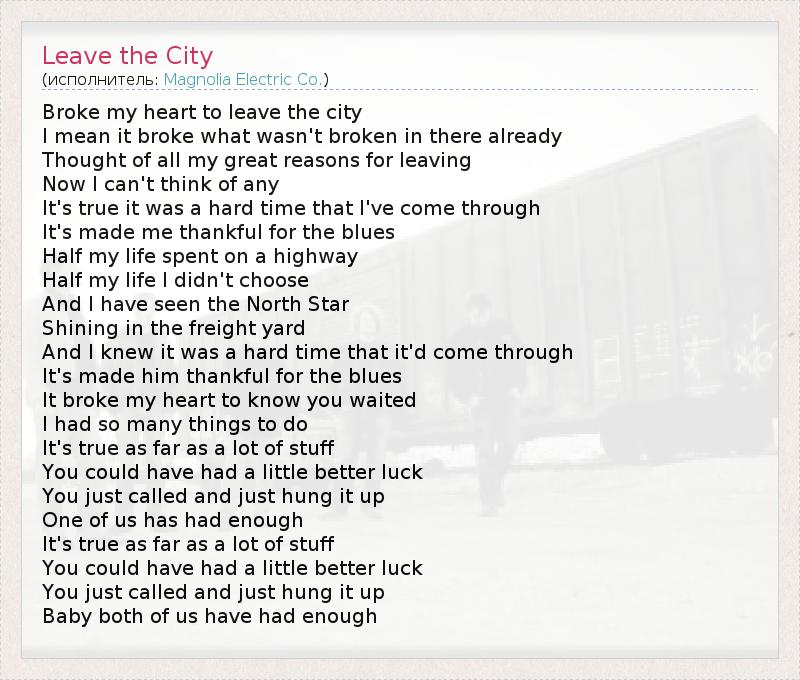 Broke my heart to leave the city I mean it broke what wasn't broken in there already Thought of all my great reasons for leaving Now I can't think of any It's true it was a hard time that I've come through It's made me thankful for the blues Half my life spent on a highway Half my life I didn't choose And I have seen the North Star Shining in the freight yard And I knew it was a hard time that it'd come through It's made him thankful for the blues It broke my heart to know you waited I had so many things to do It's true as far as a lot of stuff You could have had a little better luck You just called and just hung it up One of us has had enough It's true as far as a lot of stuff You could have had a little better luck You just called and just hung it up Baby both of us have had enough