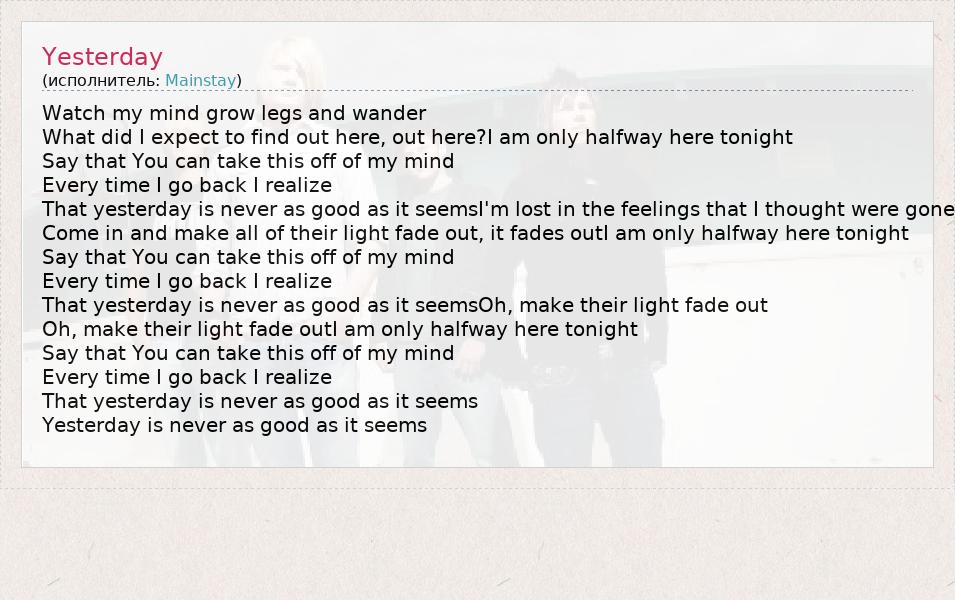 That yesterday is never as good as it seemsI'm lost in the feelings that I thought were gone