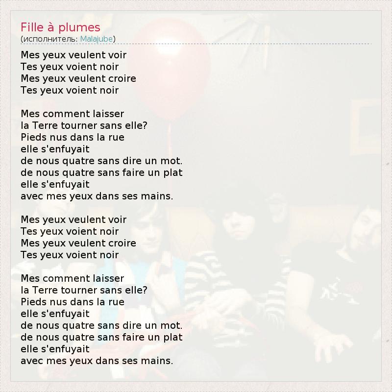 А как ты думаешь, о чем песня "Fille à plumes" ?