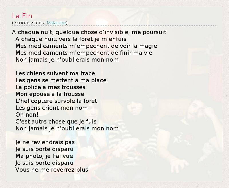 А как ты думаешь, о чем песня "La Fin" ?