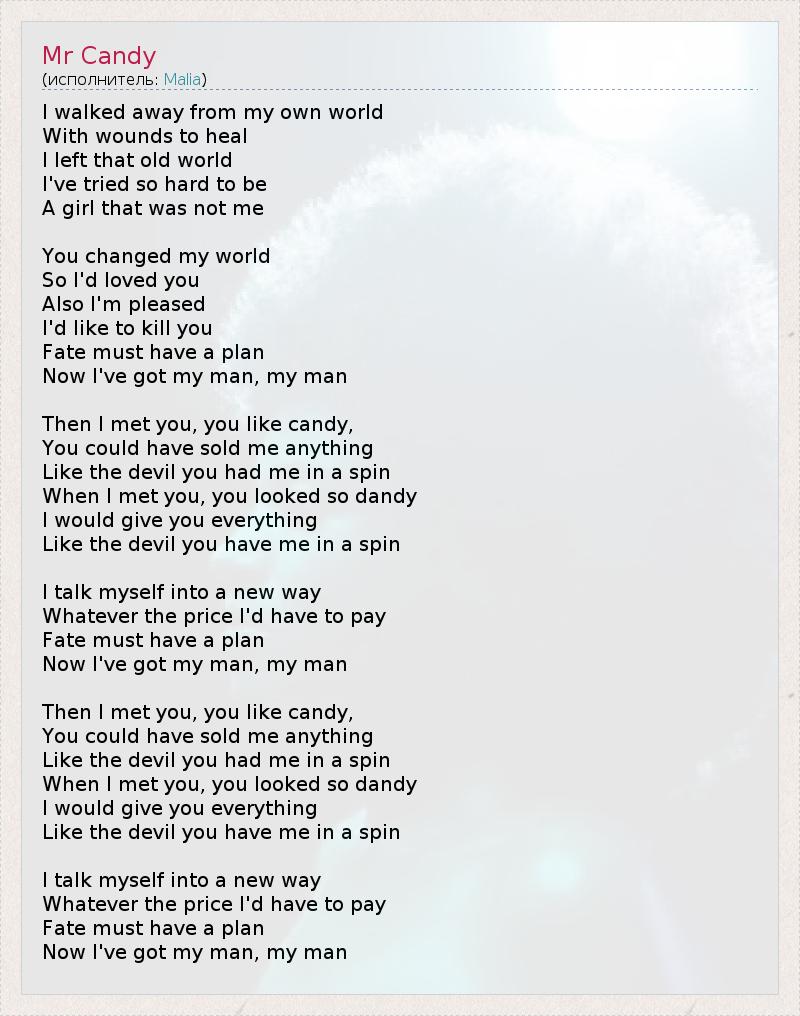 А как ты думаешь, о чем песня "Mr Candy" ?