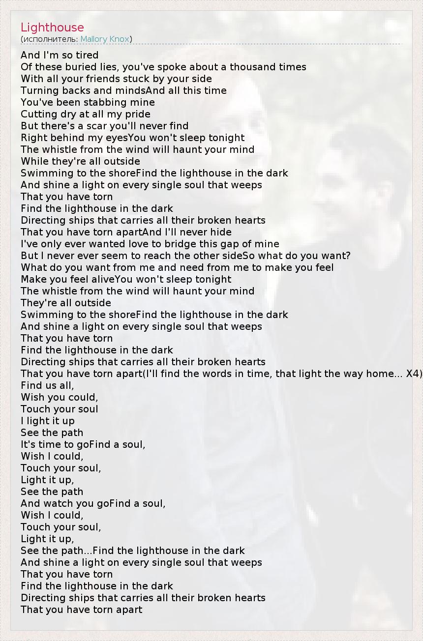А как ты думаешь, о чем песня "Lighthouse" ?