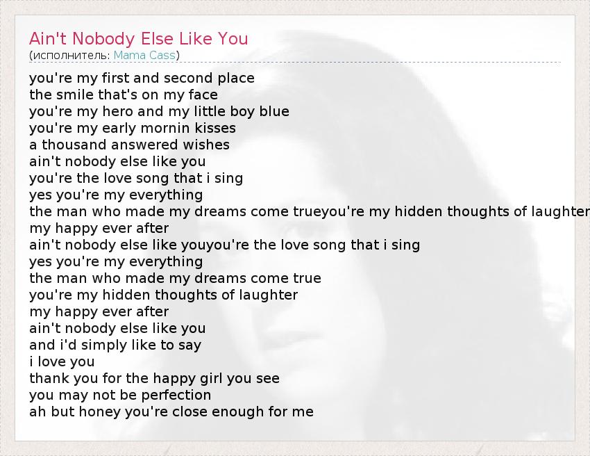 А как ты думаешь, о чем песня "Ain't Nobody Else Like You" ?