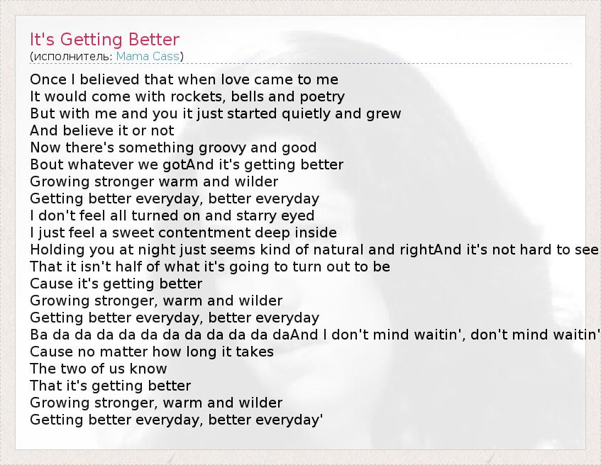 А как ты думаешь, о чем песня "It's Getting Better" ?