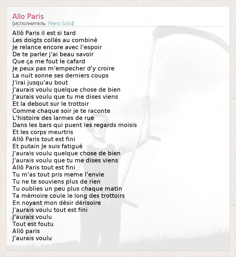 А как ты думаешь, о чем песня "Allo Paris" ?