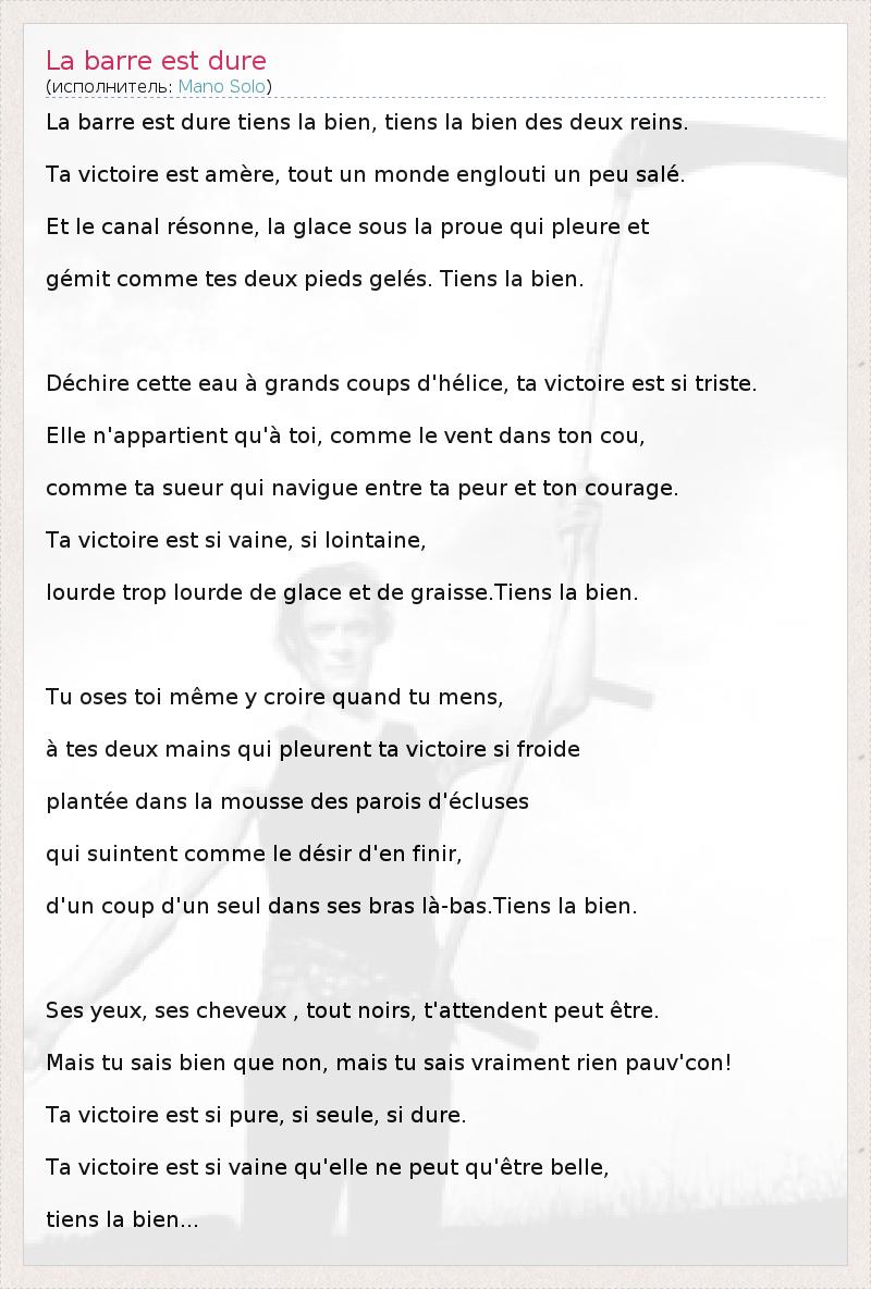 А как ты думаешь, о чем песня "La barre est dure" ?