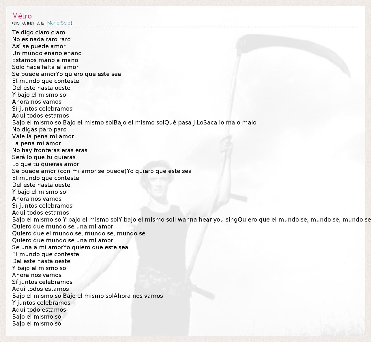 Это интересно:10 января 2010 года смолк, может быть, самый надрывный голос современной французской песни. Певец, автор и композитор Мано Соло ушел из жизни в 46 лет. Он был одним из тех, кому критики и журналисты отчаялись подыскать однозначное определение. «Своеобразный», «нетипичный»– такими словами пыталась пресса «отделаться» от неудобного и беспокойного артиста.Его называли «человеком с содранной... продолжение