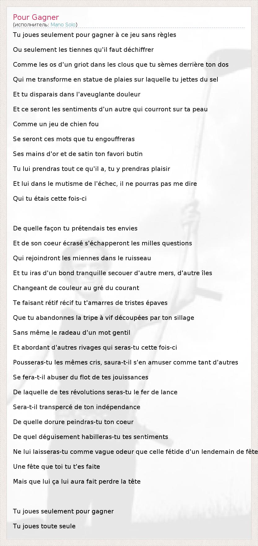 А как ты думаешь, о чем песня "Pour Gagner" ?