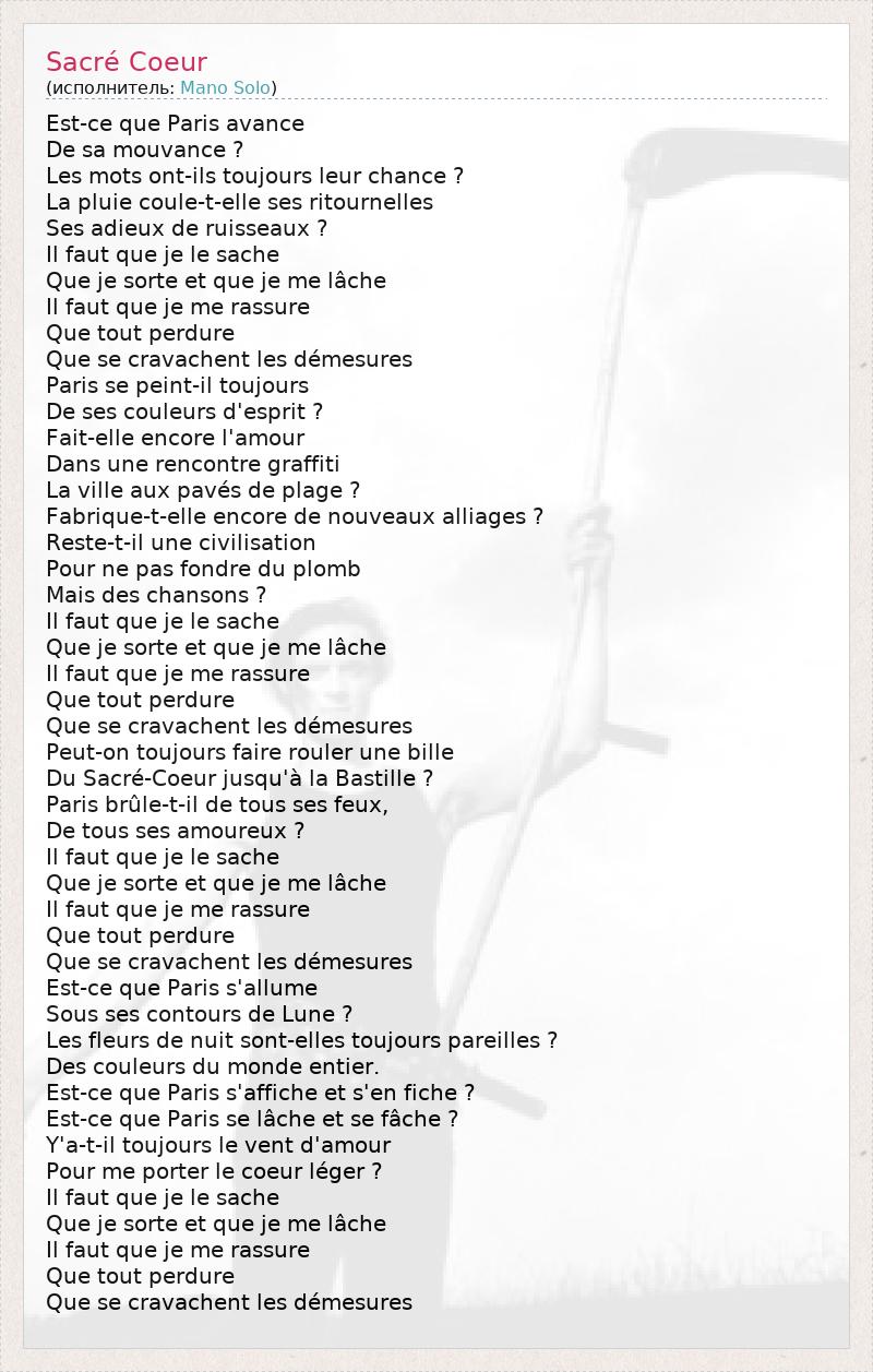 А как ты думаешь, о чем песня "Sacré Coeur" ?