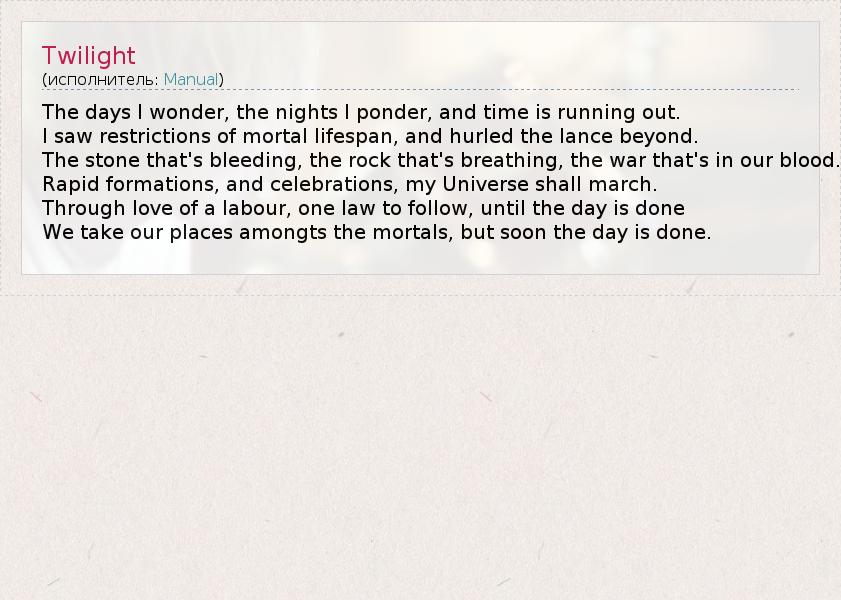 А как ты думаешь, о чем песня "Twilight" ?
