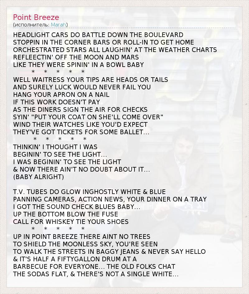 А как ты думаешь, о чем песня "Point Breeze" ?