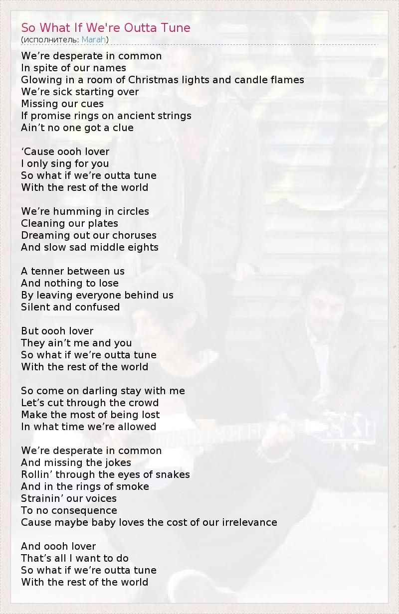 А как ты думаешь, о чем песня "So What If We're Outta Tune" ?
