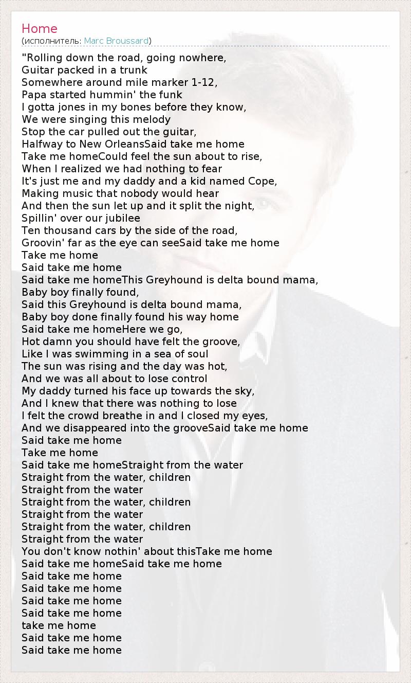 Said take me homeHere we go,