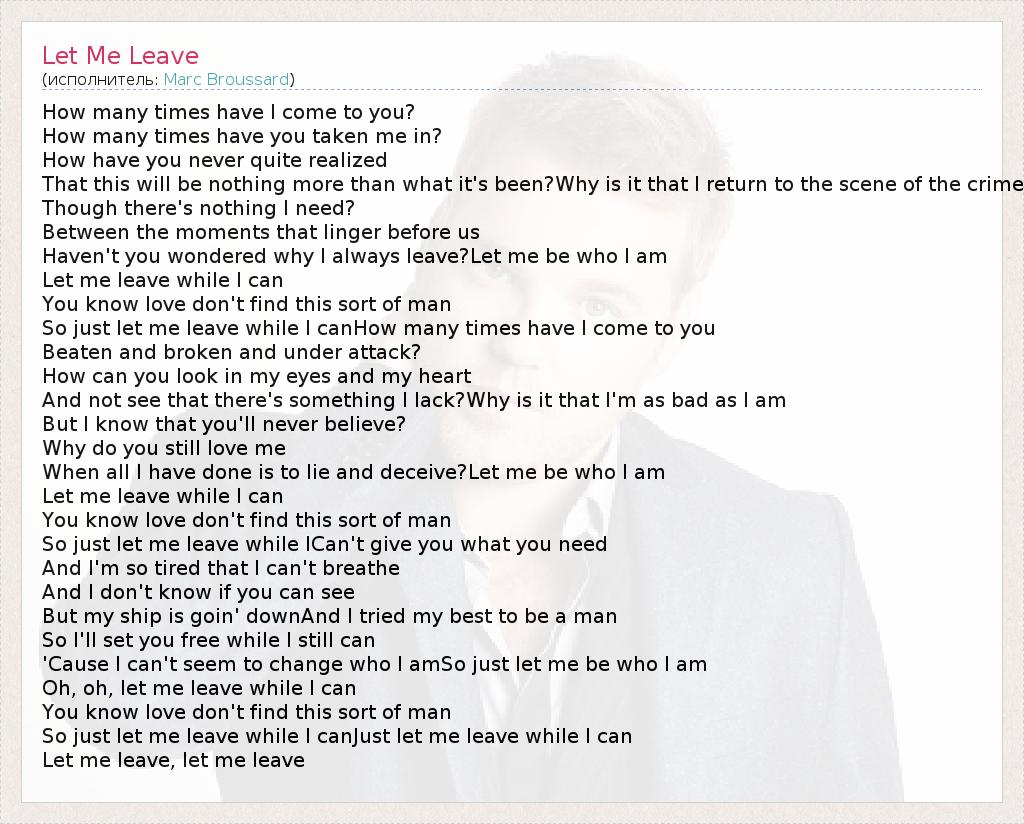 А как ты думаешь, о чем песня "Let Me Leave" ?