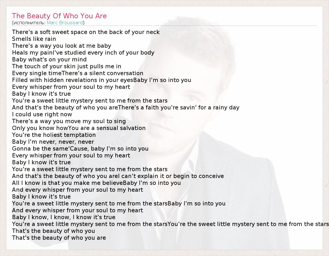 And that's the beauty of who you areI can't explain it or begin to conceive
