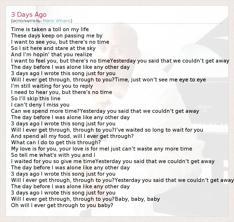 А как ты думаешь, о чем песня "3 Days Ago" ?