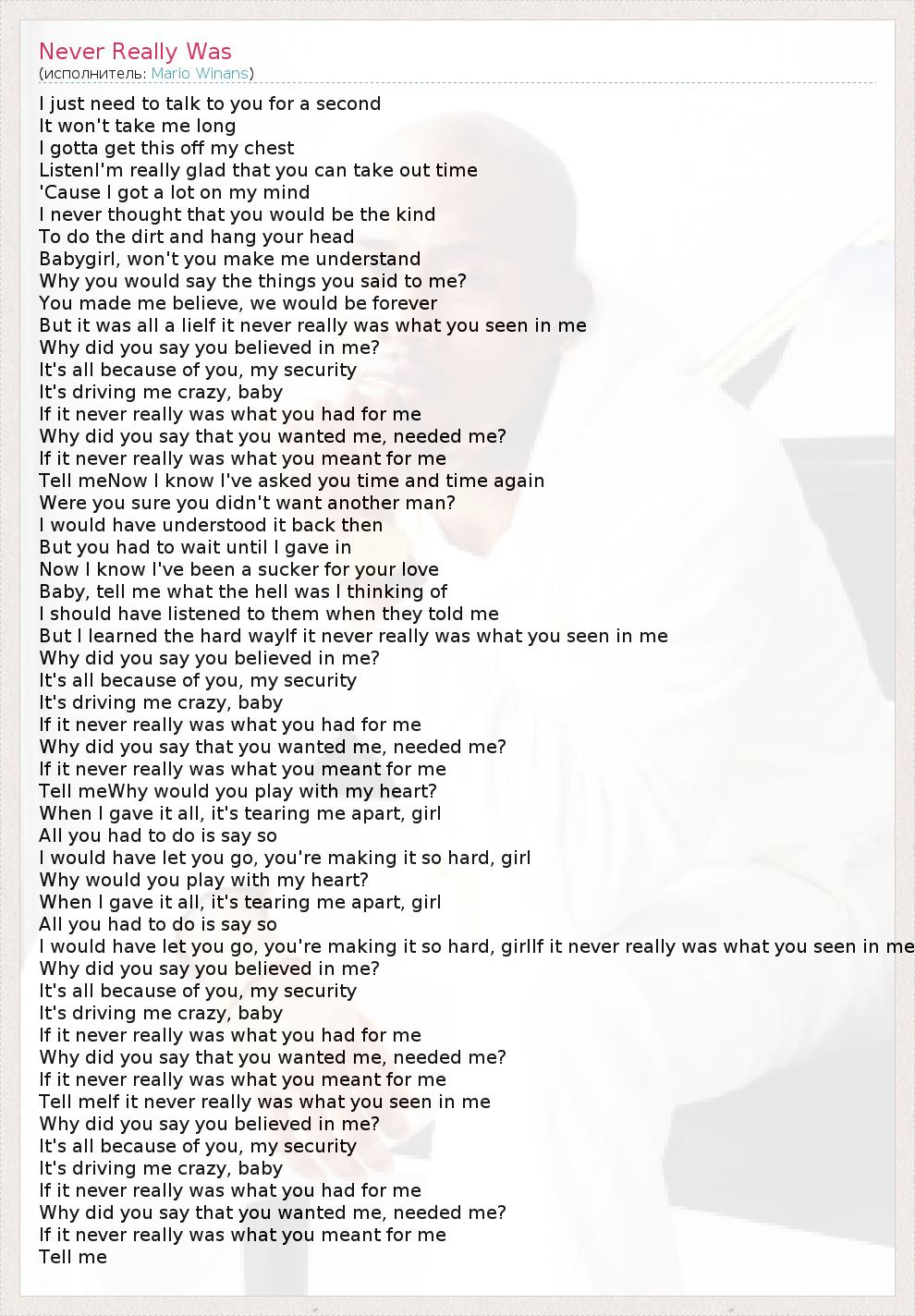 А как ты думаешь, о чем песня "Never Really Was" ?