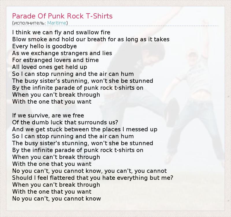 А как ты думаешь, о чем песня "Parade Of Punk Rock T-Shirts" ?