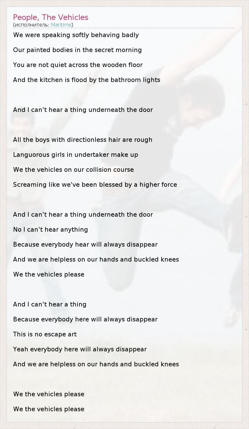 А как ты думаешь, о чем песня "People, The Vehicles" ?