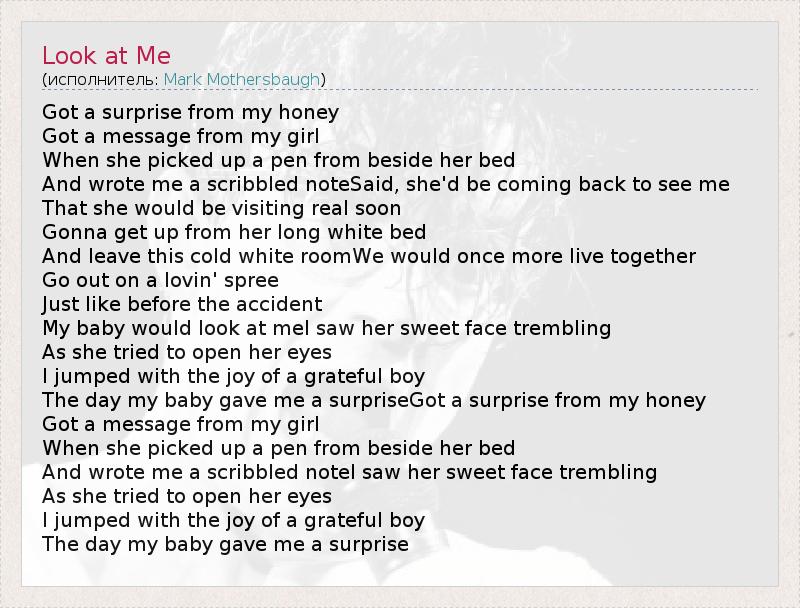 And wrote me a scribbled noteSaid, she'd be coming back to see me