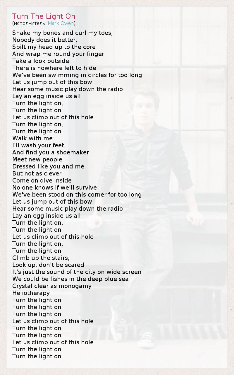 А как ты думаешь, о чем песня "Turn The Light On" ?