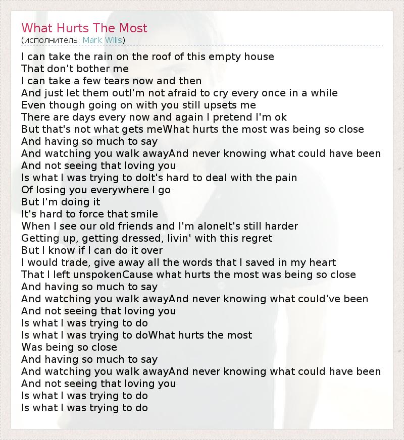 А как ты думаешь, о чем песня "What Hurts The Most" ?