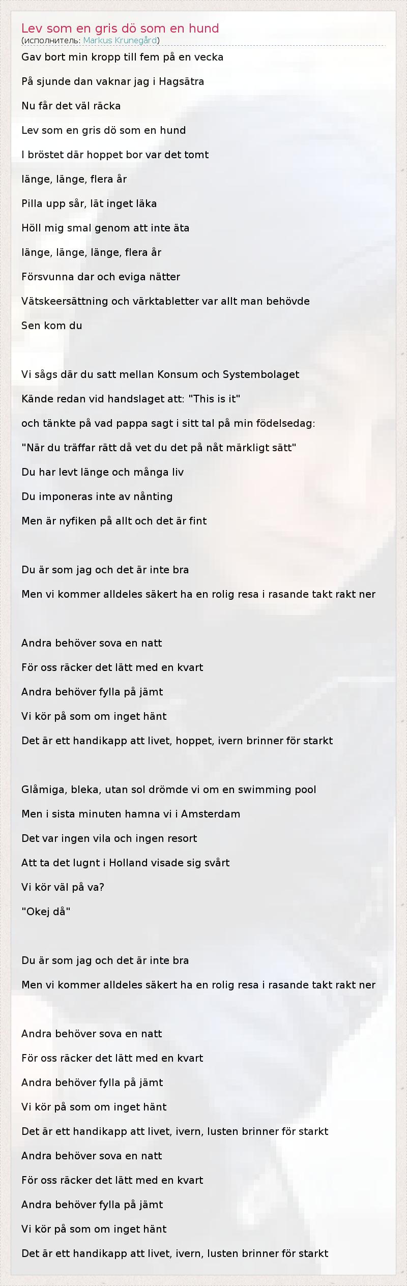 А как ты думаешь, о чем песня "Lev som en gris dö som en hund" ?