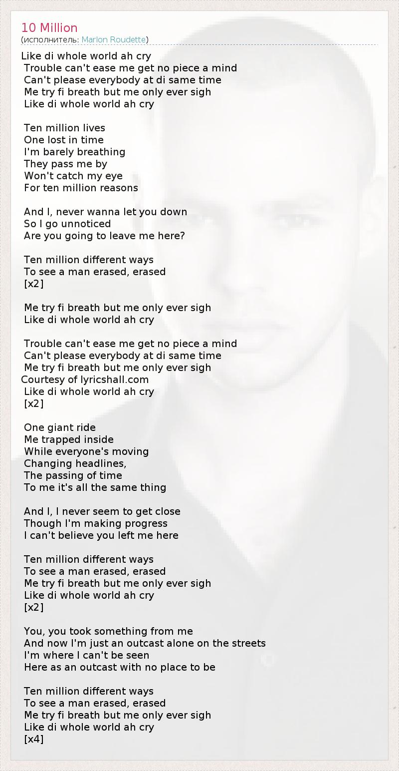 Это интересно:Марлон Макви-Рудэ (англ. Marlon McVey-Roudette, род. 5, январь 1983 в Лондоне, Великобритания) - британский, винсетианский музыкант, бывший участник группы Mattafix. Марлон - сын Камерона Макви, британского музыкального продюсера, и Вонни Рудэ, проектировщицы и художницы из Сент-Винсент. В раннем возрасте он переехал со своей матерью и сестрой в Св. Винсент, где он начал... продолжение