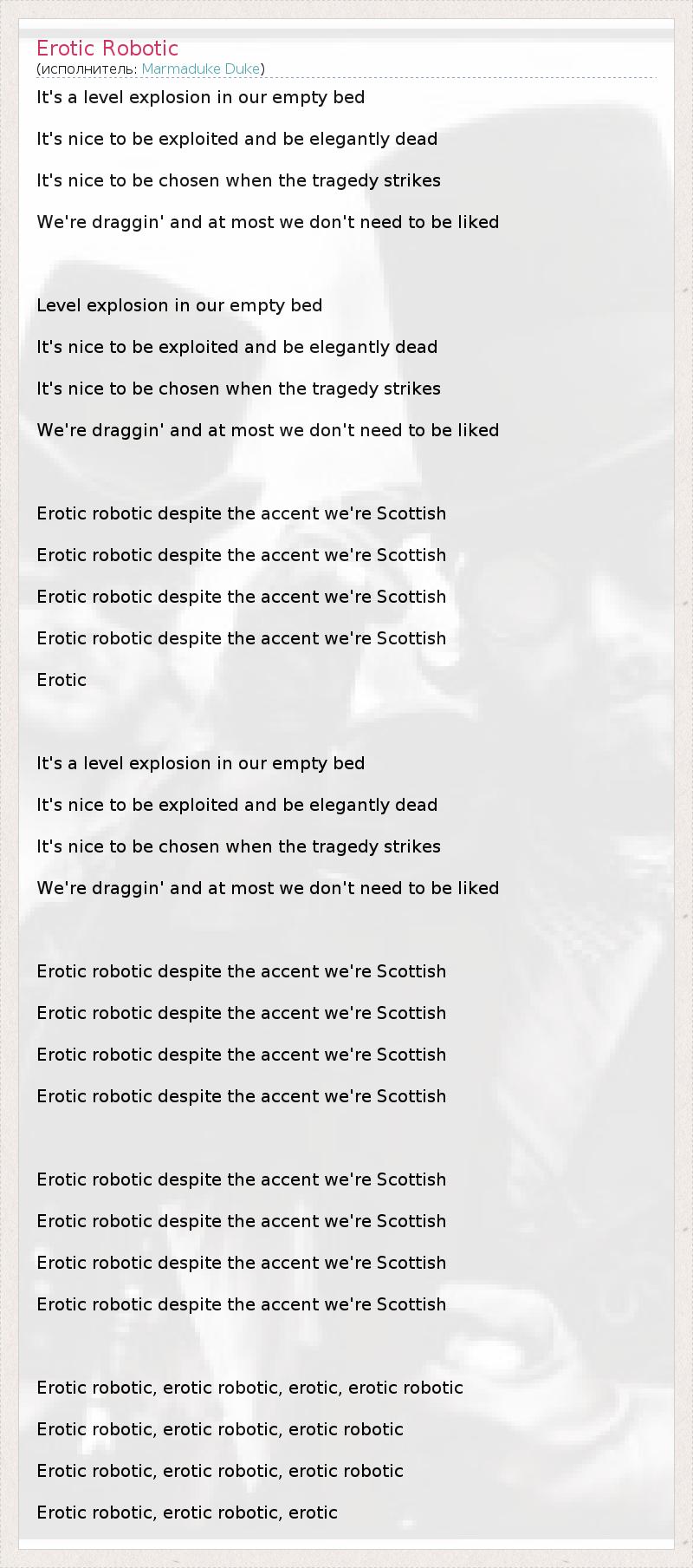 А как ты думаешь, о чем песня "Erotic Robotic" ?