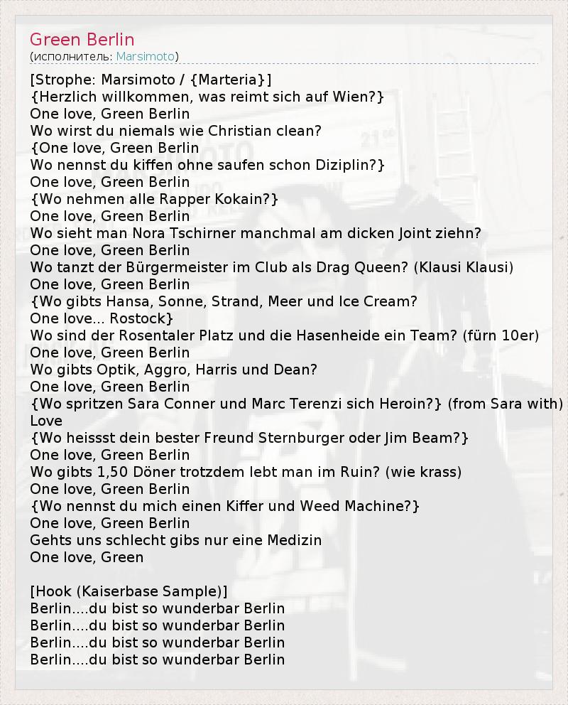 А как ты думаешь, о чем песня "Green Berlin" ?